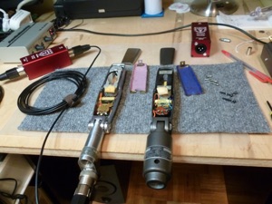 I remarked to Rick Crampton, whom I originally bought the 315s from, that I was thinking of adding an internal preamp to the ribbons to make them more compatible with my computer interfaces which are designed for condenser mics. Rick remembered he had a NOS 300, and mailed it to me. So we get to compare an early production 315 to a late production 300.