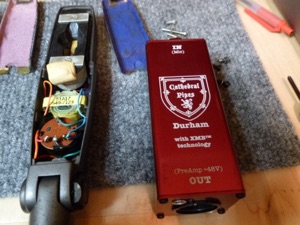 As an experiment, I squeezed some neodymium super magnets between the poles of Shure’s Alnico horseshoe magnets to see if I could get a stronger field and more sensitivity. In a word, no. No difference. Lots of alnico trumps small neodymium slugs.