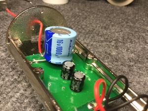 The existing electronics are modified to suit the capsule and to eliminate background hiss. This requires a small NPO ceramic or mica capacitor of 20 to 30 pF, an electrolytic capacitor of 250 to 1000 mF at 16V or more, (Make sure it’s small enough to fit inside the mic.) and optionally but recommended, a 270 to 470 ohm, 1/8 watt or higher, resistor.