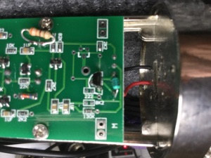 The new capsule is glued to the holder with urethane or epoxy glue. Set it aside for the glue to dry while we work on the electronics.