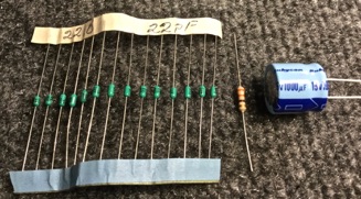 The optional resistor will reduce low frequency noise from the voltage regulator. This is trickier to solder than the capacitors.