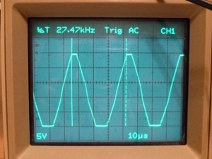 We could improve droop further by reducing the 1K resistor and the 100 ohm resistors, but this is pretty good. Cutting the resistors would increase noise on the mic power, and though the frequency is ultrasonic, it might mix with non-linear elements and make audible birdies.